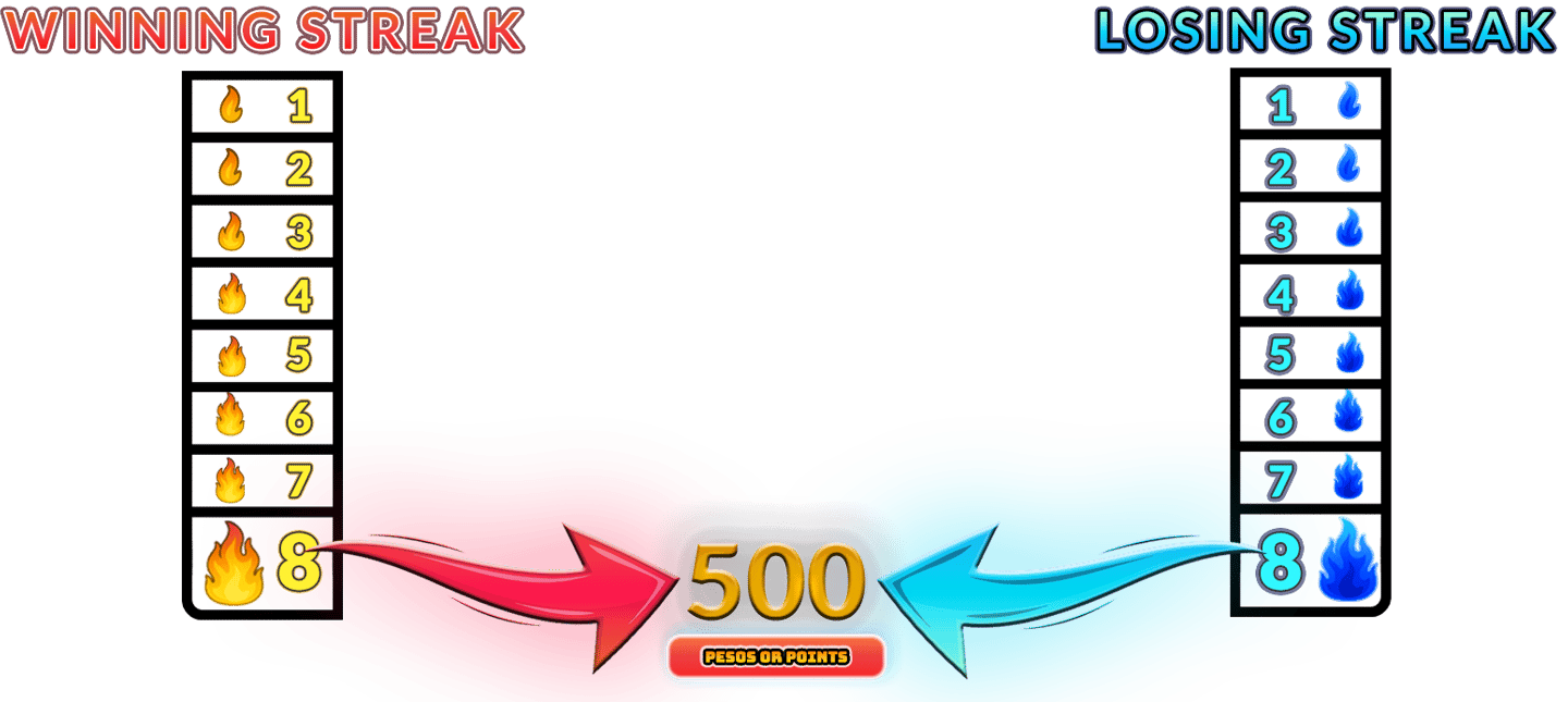 Isa itong special event para sa aming mga registered players kung saan pwede kang kumita ng bonus kapag nakabuo ka ng 8 sunod-sunod na panalo o talo. Basahin ang buong mechanics at alamin kung paano mag-claim ng reward sa araw na iyon mismo.