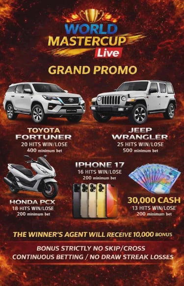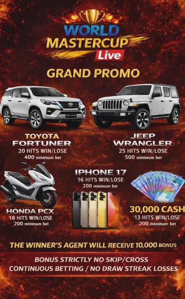 Welcome sa World Master Cup 2025 (WMC2025), bossing! The future of online entertainment is here, built for real time action and a smooth, easy to follow experience. Isang all in one platform ito na may iba't ibang game options in one place, kaya hindi ka na palipat lipat. Malinaw ang interface, mabilis ang updates, at ramdam mo yung real time thrill.
